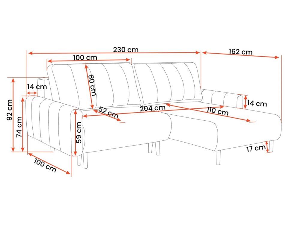 Operadlo rohovej pohovky je čalúnené látkou v rovnakej farbe. Rohová pohovka SPRINT nie je len esteticky príjemným kusom nábytku, ale aj praktickým riešením – ponúka lôžko s rozmermi 204 x 140 cm a úložný priestor.