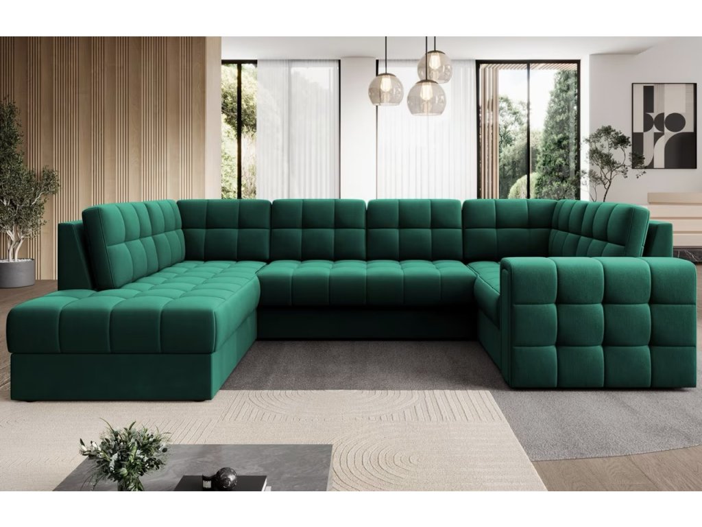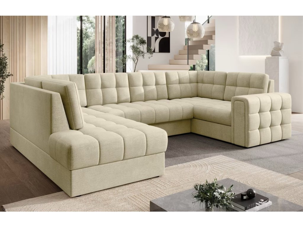 Rozkladacia sedacia súprava BLEVETT v tvare U. Na ilustračných obrázkoch je ľavé prevedenie.