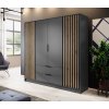 Šatníková skriňa NELLY 4D má na pravej aj ľavej strane policovú časť a v strede sa nachádza šatníková časť pod ktorou sú dve zásuvky.