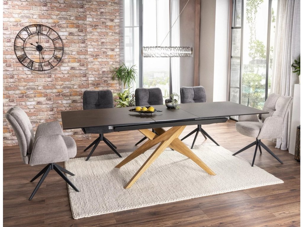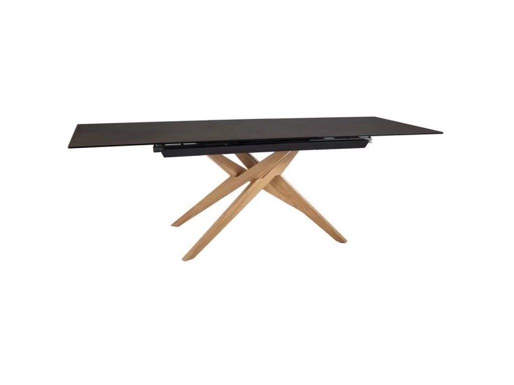 Rozťahovací stôl, doska: tvrdené sklo + keramika OSSIDO BRUNO, rám: drevo, farba: matná hnedá / dub.